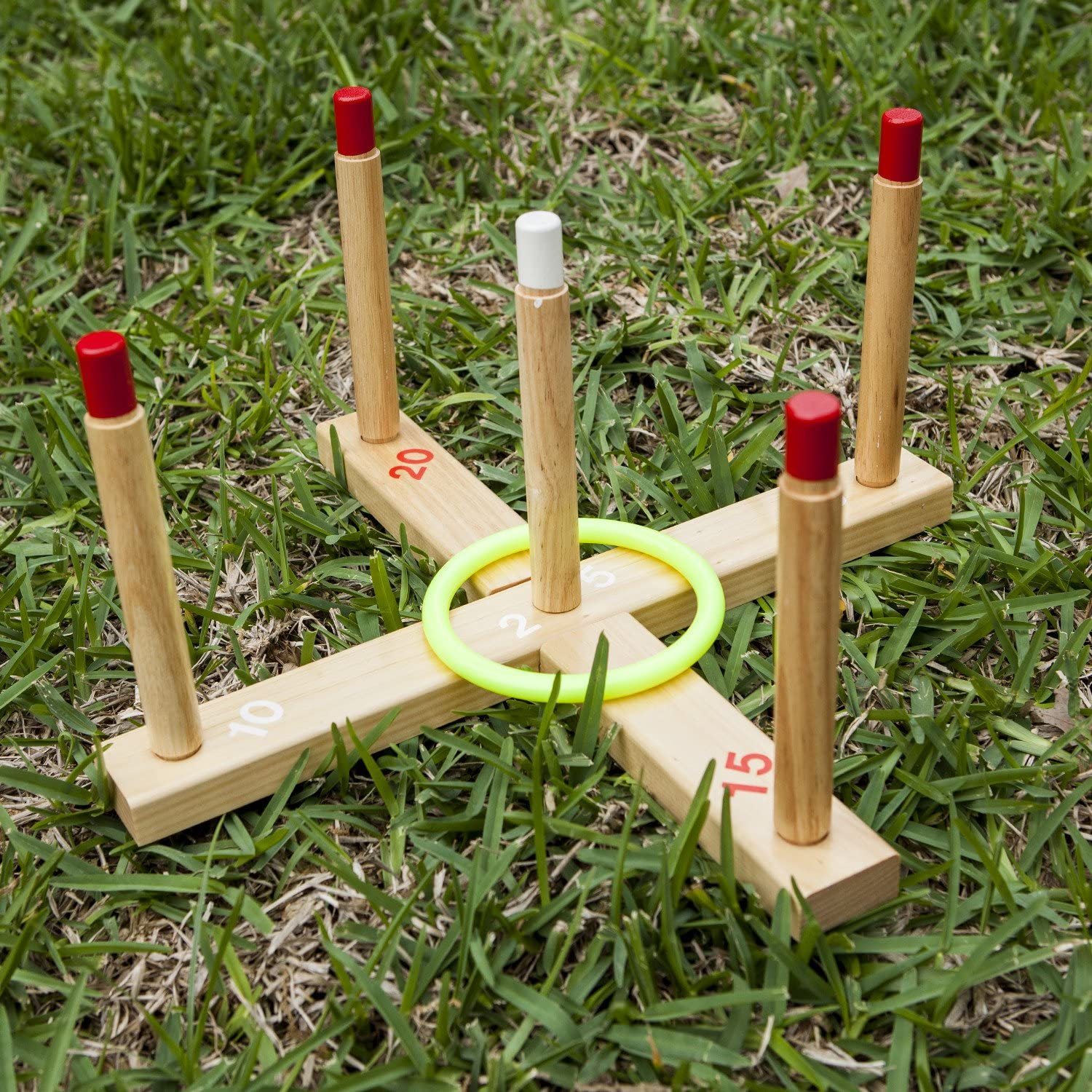 DURABLE WOODEN CONSTRUCTION: Designed for ultimate durability, this long lasting ring toss set is made from solid wood, ensuring it will withstand regular outdoor use on camping trips, during backyard barbecues or on the playground