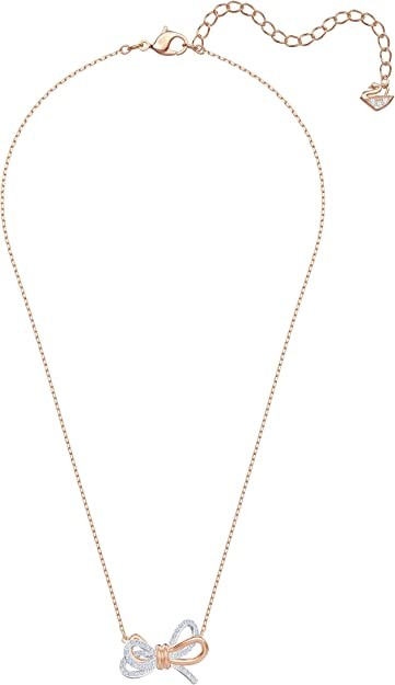 • Modern and meaningful: The combination of the sleek mixed metal 3D bow design with white crystals and a dainty rose-gold tone plated chain exudes a glamorous yet playful sophistication